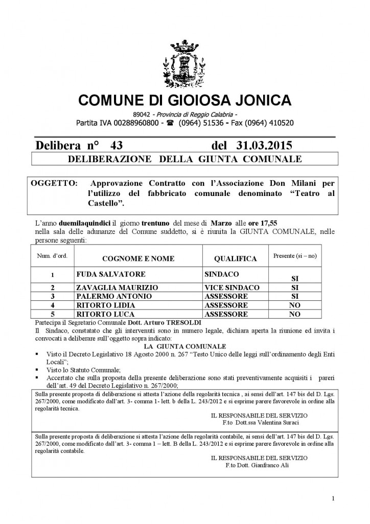 Per la presentazione del progetto al Ministero della Gioventù, il Commissario Straordinario (ovvero l’organismo amministrativo che ha guidato il Comune di Gioiosa Jonica nei primi mesi del 2013) ha concesso all’Associazione “Don Milani Onlus” la disponibilità dell’immobile “Teatro al Castello” (delibera C.S. n. 16 del 31/01/2013).