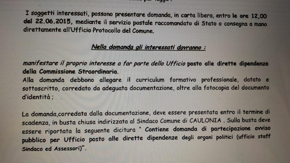 Il problema si pone quando le cose che si copiano però nemmeno le si adatta alla propria situazione… E così sull’avviso in questione viene fuori che “gli interessati dovranno manifestare il proprio interesse a far parte dell’ufficio posto alle dirette dipendenze della Commissione Straordinaria”. Link: QUI.