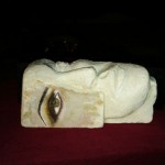 La Calabria è sempre presente nelle sue sculture e non solo dal punto di vista mineralogico. Con le nuove opere “Calabria” e “Jonia”, realizzate in argilla dipinta effetto bronzo, sottolinea la validità della nostra regione e rende omaggio al Mar Ionio protagonista della morte di coloro che hanno cercato invano di raggiungere le nostre coste nella speranza di una vita migliore. Nella scultura “Calabria” è rappresentata una bagnante, dalla bellezza inconsapevole, che emerge dal mare proprio come la Calabria dalla bellezza scarsamente valorizzata ma dalle innumerevoli risorse. “Kaulon”, realizzata in marmo e mosaico, vuole ricordare l’ erosione subita dalle nostre coste negli inverni scorsi e il danneggiamento del tempio archeologico di Monasterace. Il messaggio è espresso attraverso la rappresentazione di una donna dormiente, in posizione fetale, quasi in balia delle onde proprio come i resti dell’ antica Kaulon.
