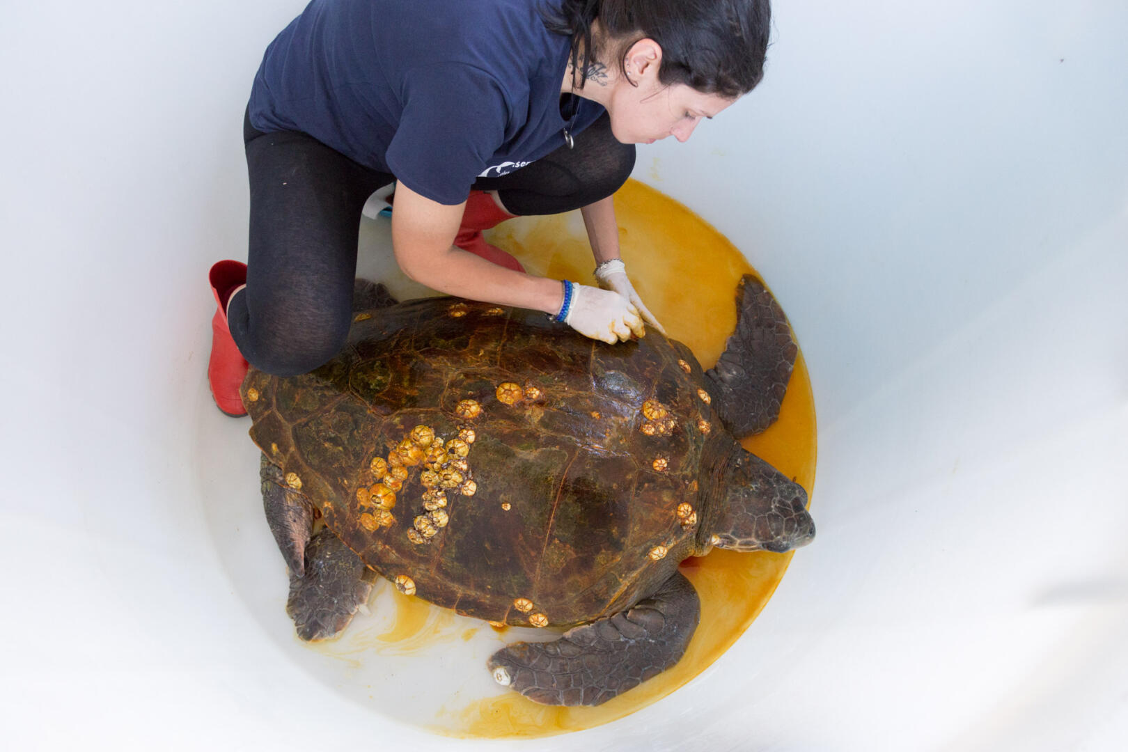 La grossa tartaruga si trova adesso ricoverata presso il CRTM Brancaleone ed è già stata sottoposta ai primi accertamenti del caso, che hanno riscontrato la presenza di una ferita lacero-contusa sul carapace, difficoltà nell’immersione sicuramente dovuta alla presenza di plastica nello stomaco, e nelle prossime ore sarà sottoposta ad ulteriori indagini diagnostiche approfondite grazie alla preziosa collaborazione del Prof. Antonio Di Bello (DMV Università di Bari), medico veterinario e docente universitario altamente specializzato nella cura di questi animali marini.