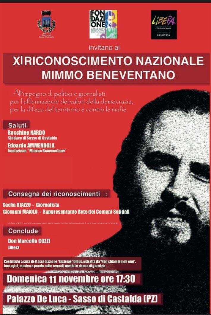 A trentotto anni dalla morte di Mimmo Beneventano, il medico, giornalista e amministratore locale di origine lucane ucciso in un agguato di camorra a Ottaviano, Libera Basilicata, in collaborazione con la Fondazione Mimmo Beneventano e il Comune di Sasso di Castalda, organizza l’undicesima edizione del riconoscimento dedicato a giornalisti e amministratori che si sono distinti nella lotta all’illegalità, cercando di contrastare le mafie di ogni tipo, e nella promozione di una società giusta.