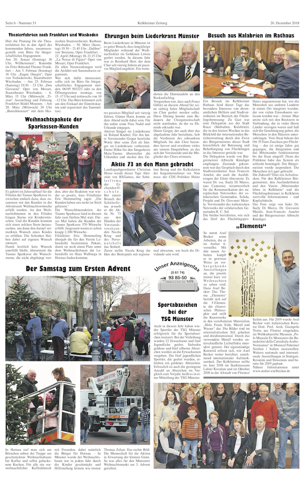 La stampa tedesca ha raccontato l’incontro avuto da Giovanni Maiolo (Rete dei Comuni Solidali) e Suely Di Marco (Solida Association) col sindaco e le associazioni di KelKheim, vicino Francoforte.