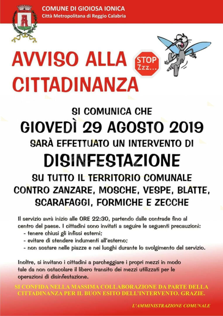 HomegioiosaNuovo intervento di disinfestazione a Gioiosa Ionica A Ciavula27 Agosto 2019 20:55 Giovedì 29 agosto, a partire dalle 22.30, verrà effettuato un intervento di disinfestazione, partendo dalle contrade fino al centro del paese CATEGORIES gioiosaNews TAGS disinfestazioneGioiosa Ionica Share ThisAUTHORA CiavulaRedazione