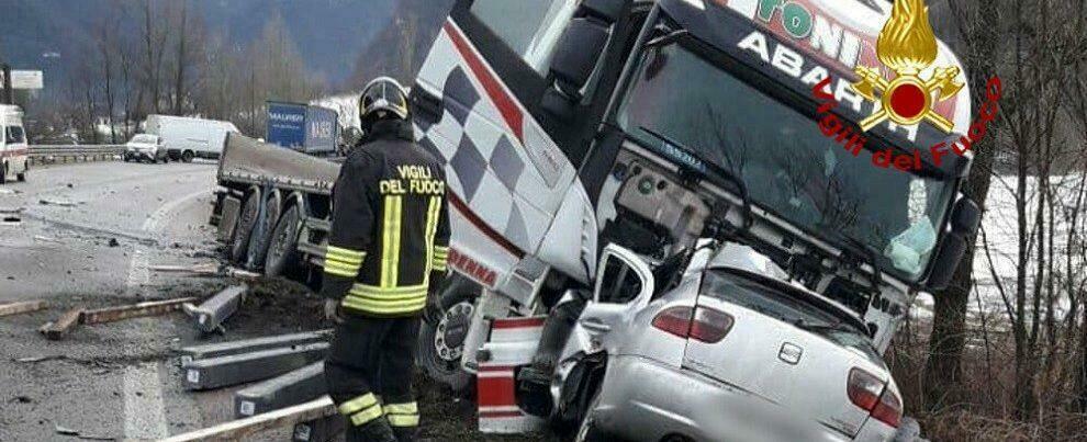 Devastante frontale tra un mezzo pesante e un’auto, una persona perde la vita