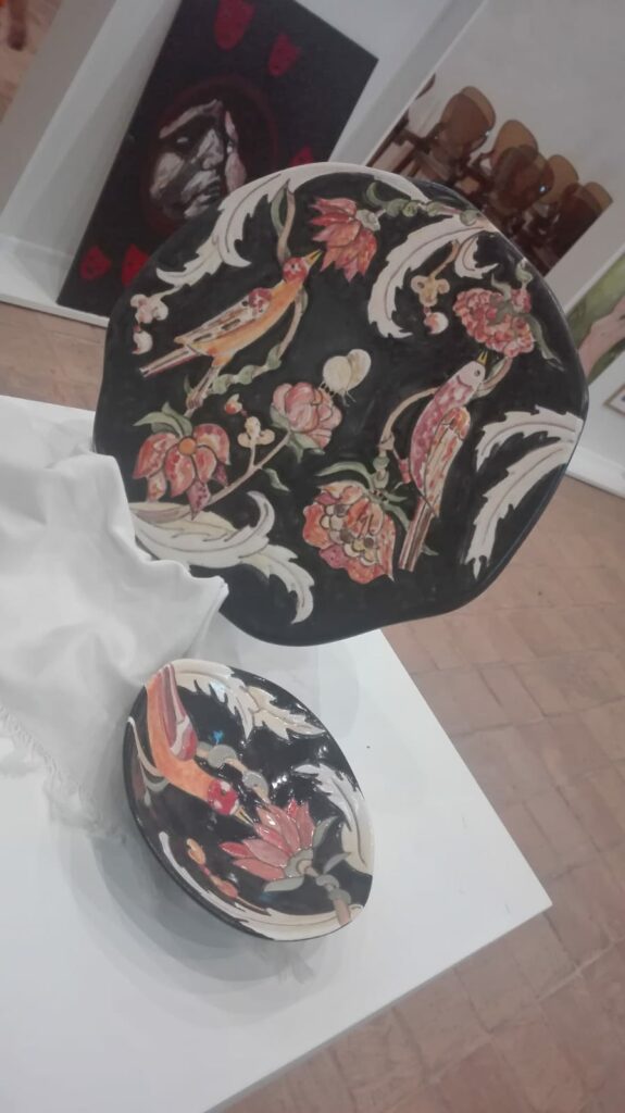 Nel corso della serata sono stati presentati i vari artisti che espongono, ad iniziare dai fratelli Tonino e Giovanni Condò che a Gerace hanno ripreso e portato avanti la tradizione artistica delle ceramiche che hanno contraddistinto l’artigianato locale nei secoli. A tal proposito l’Assessore Galluzzo ha anticipato che nelle prossime settimane Gerace ospiterà una mostra di ceramiche provenienti da Malta, che sono state prodotte a Gerace su commissione di Venezia.