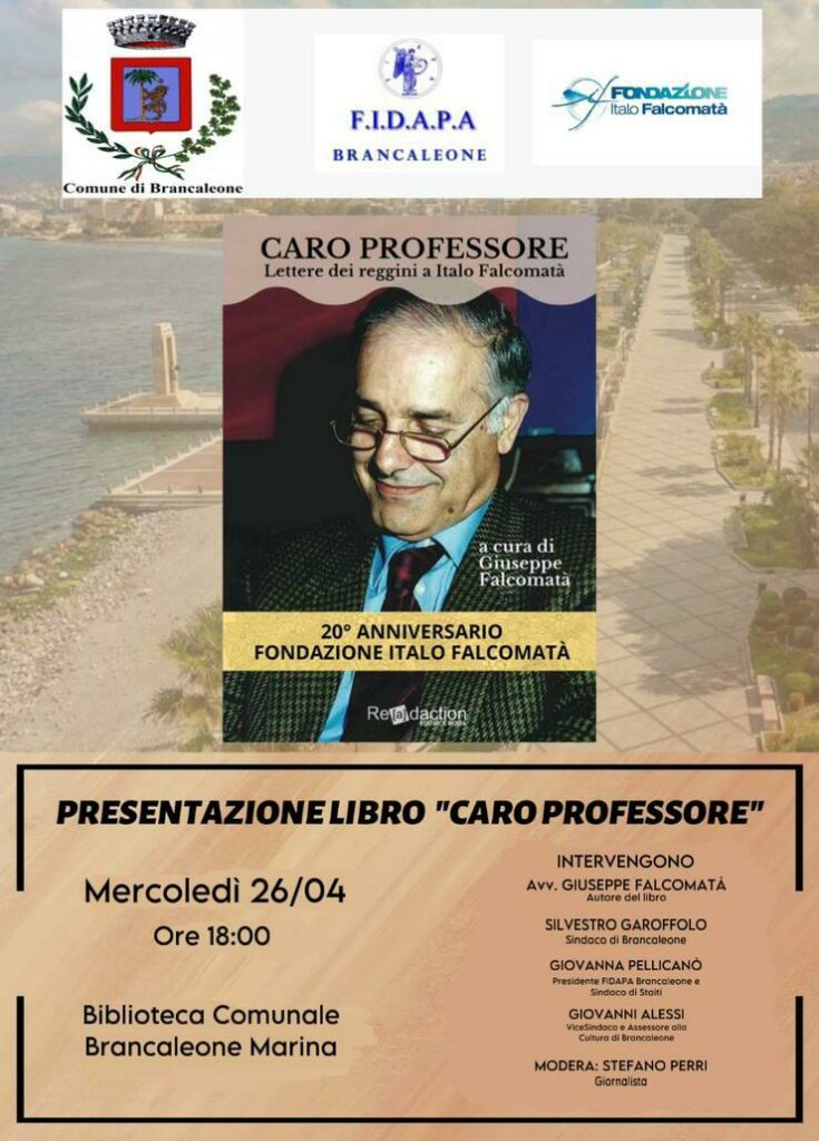 Si terrà oggi pomeriggio alle ore 18.00 presso la Biblioteca Comunale di Brancaleone Marina, la presentazione del libro “Caro Professore”. L’evento è realizzato dall’Amministrazione comunale di Brancaleone, in collaborazione con la Fidapa e con la Fondazione Italo Falcomatà.