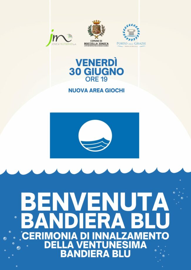 Si svolgerà il prossimo venerdì 30 giugno la cerimonia di benvenuto alla “Bandiera Blu 2023”, il prestigioso riconoscimento simbolo di mare pulito, qualità e sicurezza dei servizi in spiaggia e attenzione all’ecosostenibilità, che la FEE (acronimo di “Foundation for Environmental Education”) ha conferito per il 21 anno consecutivo al Comune di Roccella e per il 7 anno di fila all’approdo turistico Porto delle Grazie.