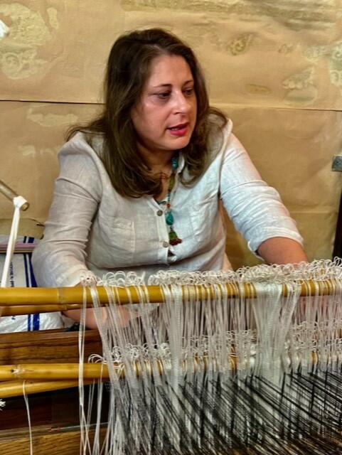 con maestria, crea borse, asciugamani, scialli e coperte di straordinaria raffinatezza, utilizzando anni di ricerca per rivitalizzare un’arte a rischio di scomparsa.