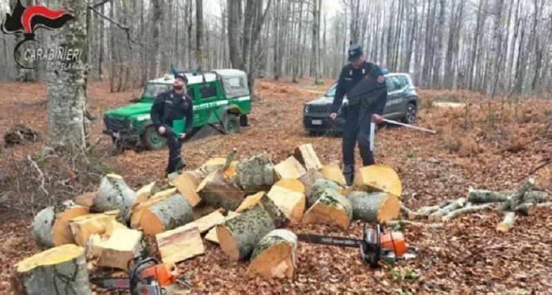 Nei giorni scorsi i militari del Nucleo Parco di Zagarise, durante un servizio finalizzato a identificare gli autori di furti di legna all’interno del demanio pubblico nel comune di Petronà, hanno sorpreso i due, uno di Petilia Policastro e uno di Mesoraca, mentre con l’ausilio di motoseghe sezionavano una grossa pianta di faggio del diametro di 80 centimetri, la cui legna era in parte già stata caricata su due automezzi cassonati.