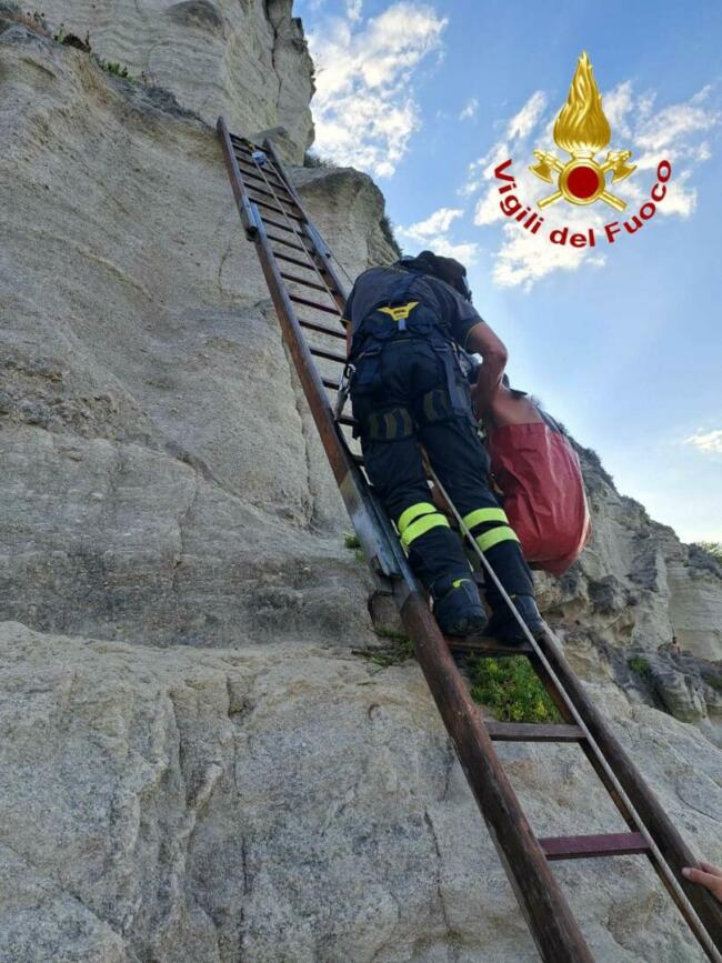 Rimane bloccato a 15 metri d’altezza su una scogliera a Tropea, salvato dai Vigili del Fuoco
