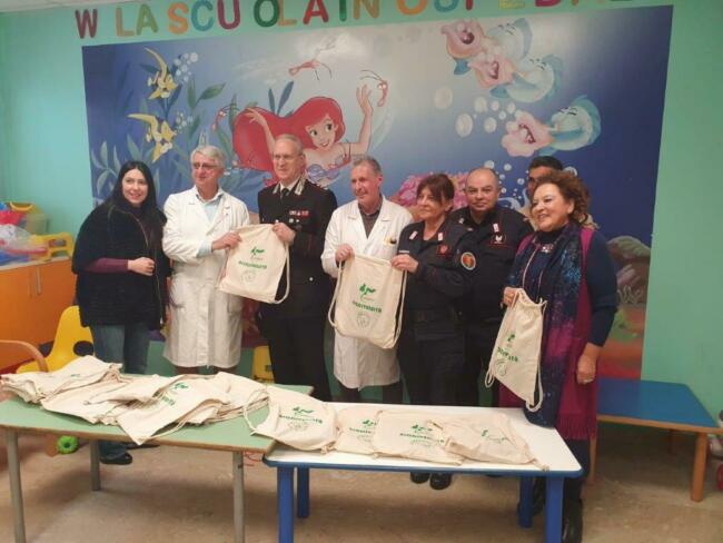 Sono stati consegnati gadgets come quaderni, matite, cappellini, colori, zainetti in tela o carte da gioco per alleviare la permanenza in ospedale dei piccoli degenti e sono state condivise immagini e sensazioni riguardanti la conoscenza della biodiversità, per consentire un “contatto” virtuale con la natura.