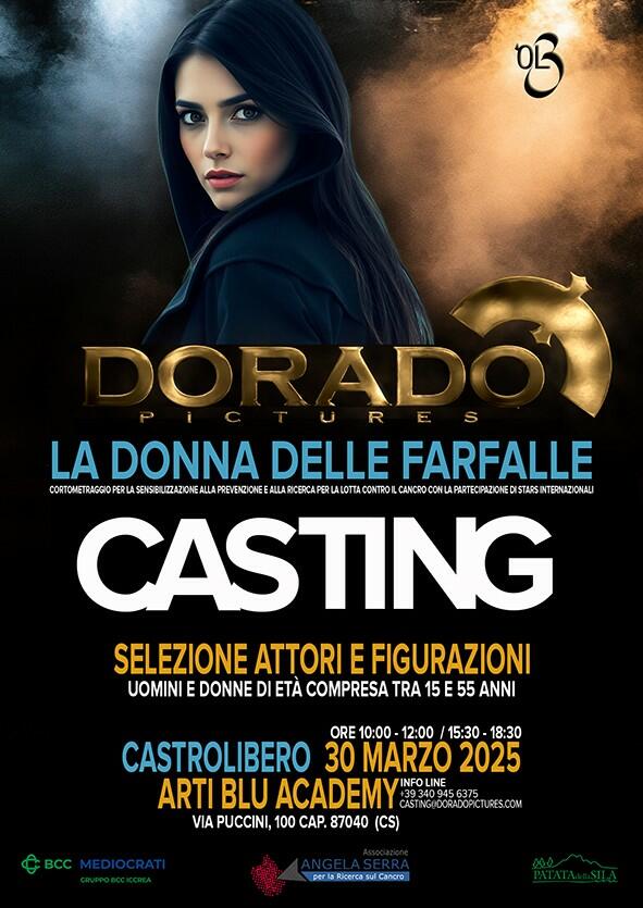 Si svolgerà il 30 marzo, a Cosenza, il casting del cortometraggio prodotto da Dorado Pictures dal titolo “La donna delle farfalle”, con la regia di Luca Fortino. Il film fa parte di un ampio progetto artistico e sociale, che ha come obiettivo la sensibilizzazione riguardo alla prevenzione del cancro e il sostegno alla ricerca scientifica.