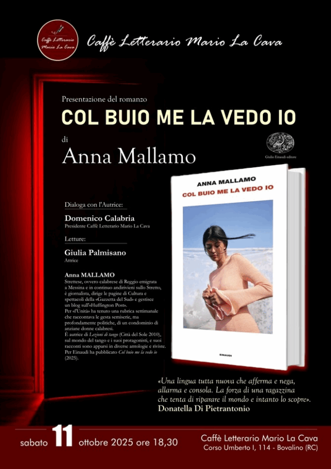 A Bovalino la presentazione del libro “Col buio me la vedo io” di Anna Mallamo