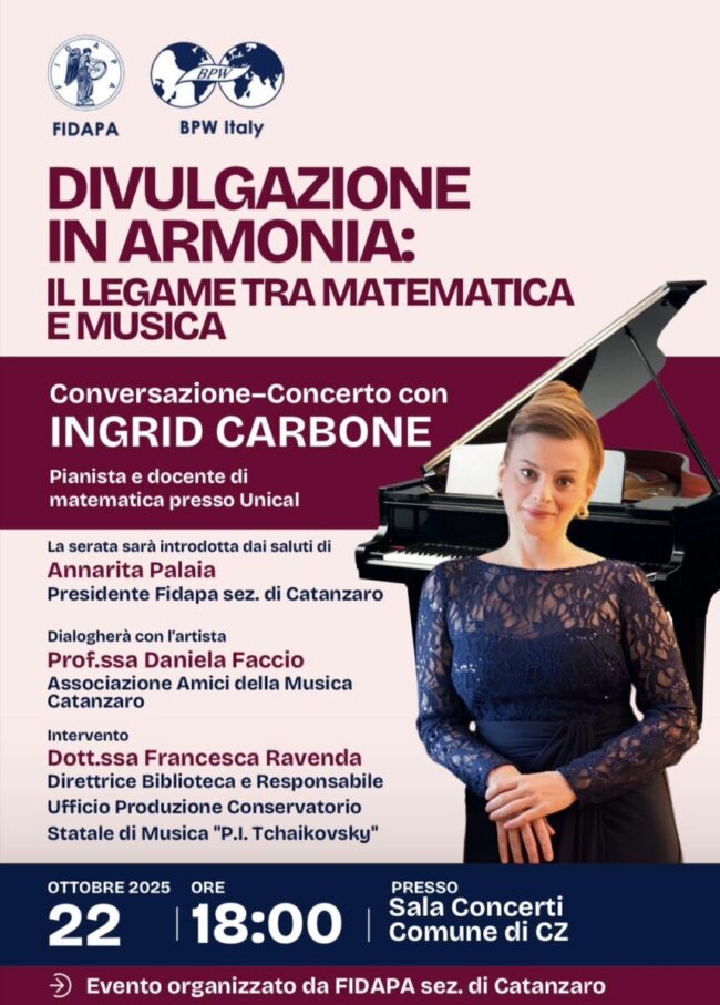 1.Domani terrà a Catanzaro l’evento “Divulgazione in Armonia” dedicato al legame tra musica e matematica. Cosa ha voluto trasmettere scegliendo proprio questo tema per il suo format di conversazione-concerto?