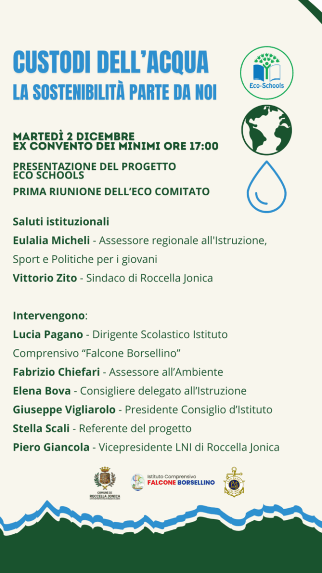 A tal proposito, il Comune di Roccella Jonica, per promuovere l’iniziativa, ha deciso di inaugurare il progetto con una giornata dal titolo “Custodi dell’acqua, la sostenibilità parte da noi” per stimolare la partecipazione attiva e sensibilizzare sui temi della sostenibilità ambientale.