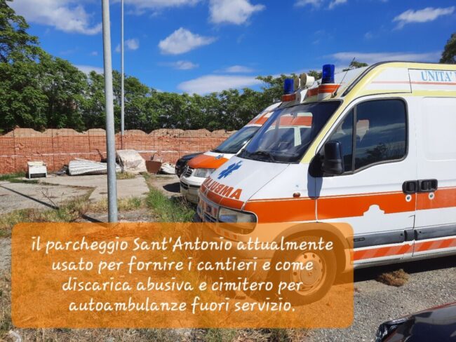 | 2. | 02.07.2024 PEC protocollo 10.11.2025 PEC protocollo | Parcheggio accanto alla Porta Sant’Antonio, l’entrata principale del Centro Storico per ospiti e abitanti: questo logo attualmente viene usato parzialmente per fornire i cantieri la ripida salita che porta al parcheggio è completamente rovinata e scivolosa, causato dai mezzi pesanti, dal fatto che il manto stradale non è stato preparato per tali mezzi e da una continua caduta di sassi anche il manto stradale del parcheggio è in crescente rovina, ultimamente causata dai mezzi pesanti dei cantieri il parcheggio viene usato come discarica abusiva e cimitero per autoambulanze fuori servizio mancano alberi – dall’inizio previsti e mai realizzati – per dare ombra a persone e macchine. In estate il parcheggio diventa un forno per lasciare il parcheggio, i pedoni devono arrampicarsi su un muro, un disastro per handicappati, anziani, deboli e famiglie con bambini piccoli. l’erosione preoccupante della “rupe Sperone” lato parcheggio | chiediamo di intervenire immediatamente per finire lo stato di pericolo pubblico, di isolamento e di mancanza di manutenzione e inclusione chiediamo di dialogare sulle nostre proposte per un ammodernamento di questo luogo abbandonato, anche per creare impulsi economici (posti di lavoro) e contrastare le casse vuote del Comune: accesso senza barriere architettoniche (vale per tutta Caulonia) impiantare alberi, donati da persone interessate, tramite un’azione “adottare un albero” impianti fotovoltaici e colonnine di ricarica servizio navetta con macchine elettriche secondo il sistema “car sharing” … per turisti: carretti con asini riattivazione dell’abbeveratoio accanto alla Porta Sant’Antonino mercati regolari con prodotti tipici caulonesi, in capanne stabili in pietra naturale e legno ai bordi del parcheggio, i cui tetti potrebbero essere utilizzati per elementi fotovoltaici (“parcheggiare ed acquistare a chilometro zero”) | |