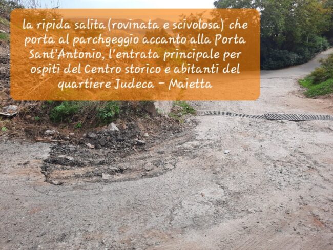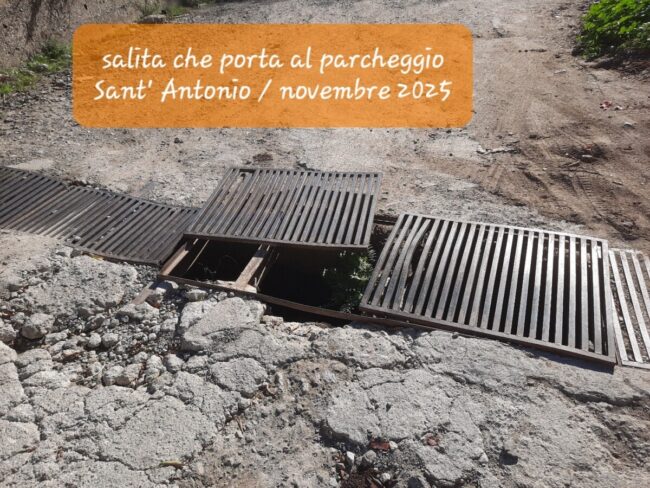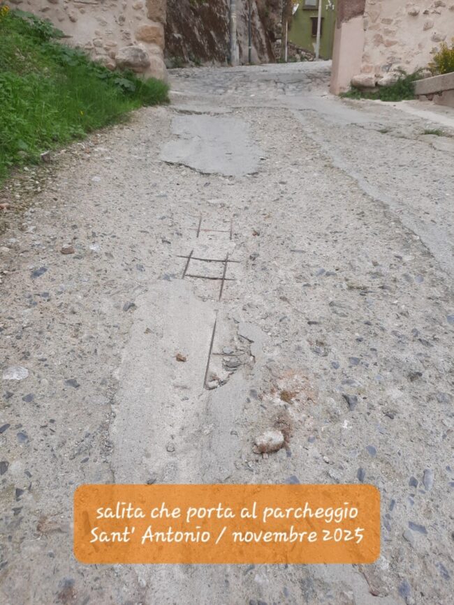 | 3. | 02.07.2024 PEC protocollo 10.11.2025 PEC protocollo | scalinate, vie e piazze del quartiere erosi e deformati dalle acque meteoriche e mal percorribili: p.e. scalinata Via II Maietta, Via Sant’Antonio, Largo e Via Del Vecchio, Piazza Sperone | chiediamo di intervenire immediatamente per finirelo stato di pericolo pubblico e di dialogare sulle nostre proposte: montare ringhiere per potersi appoggiare e rendere i gradini accessibile ai disabili | |