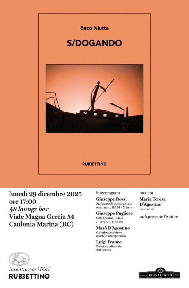 Lunedì 29 dicembre 2025, ore 17.00, al “48 Lounge Bar” di Caulonia Marina, in viale Magna Grecia 54, si terrà la presentazione del volume “S/dogando”, raccolta fotografica delle opere di Enzo Niutta, con testi critici di Giuseppe Rossi, edito da Rubbettino.