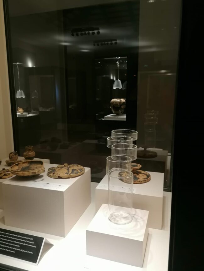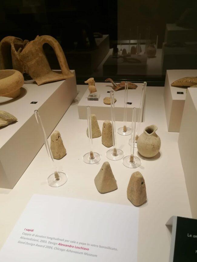 Con una visita guidata, Marò d’Agostino ha poi illustrato nel dettaglio l’allestimento: un originale dialogo tra una selezione di oggetti di design realizzati da Loschiavo tra il 2000 e il 2021 e alcuni materiali archeologici provenienti da Locri Epizefiri – ceramiche, terrecotte votive e utensili domestici. Proprio il profondo, visibile legame espressivo e creativo tra i segni del passato magnogreco e il segno contemporaneo di Loschiavo ha guidato il taglio curatoriale.