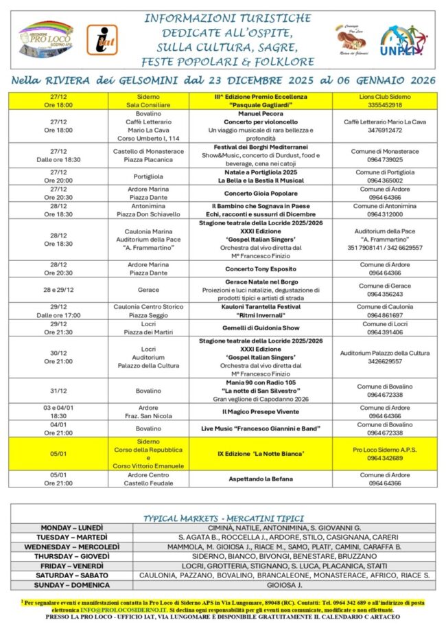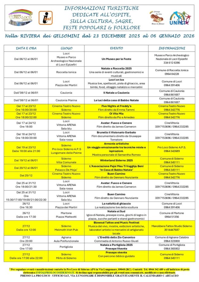 Il calendario degli eventi culturali della Locride dal 23 dicembre al 6 gennaio