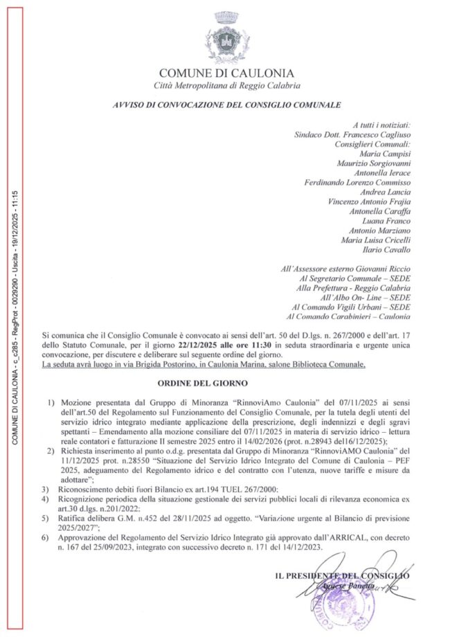 HomecauloniaIl consiglio di Caulonia ridiscuterà i punti bocciati A Ciavula19 Dicembre 2025 11:38 0 Pubblichiamo l’avviso di convocazione del consiglio comunale di Caulonia. CATEGORIES CalabriacauloniaDalla LocrideNewspoliticaTutte le notizie TAGS cauloniaconsiglio comunale di caulonia Share ThisAUTHORA CiavulaRedazione