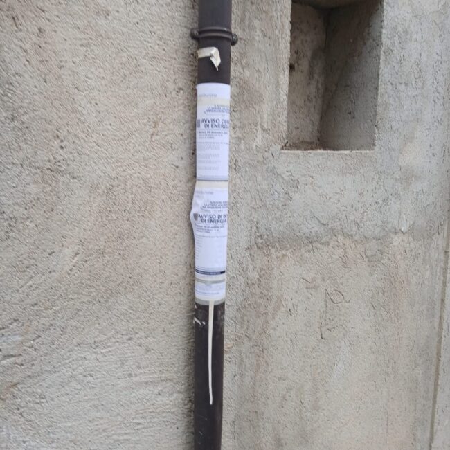 Negli ultimi giorni, in occasione di interventi tecnici (come sostituzione di cavi o manutenzioni varie), sono apparse ovunque locandine affisse senza criterio: su muri privati, porte, pali, facciate di abitazioni, perfino su tubi in rame e infissi.