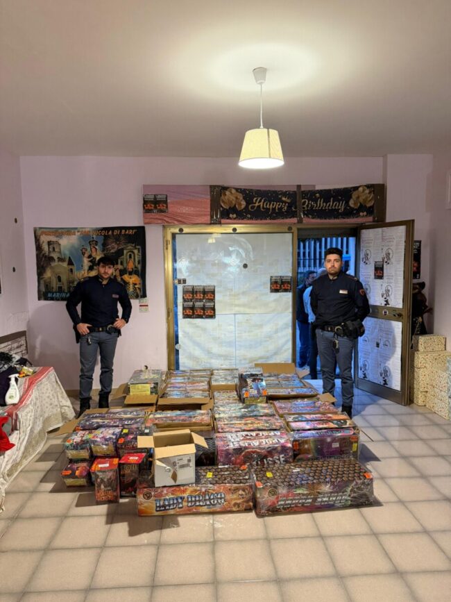 Nell’ambito dei servizi straordinari di controllo del territorio, previsti per le festività di fine anno, la Polizia di Stato ha segnalato alla Procura della Repubblica presso il Tribunale di Locri due soggetti, rispettivamente di Siderno a Marina di Gioiosa, ed effettuato un sequestro di artifizi pirotecnici e materiale esplodenti per un quantitativo complessivo pari a 5 tonnellate di prodotti.