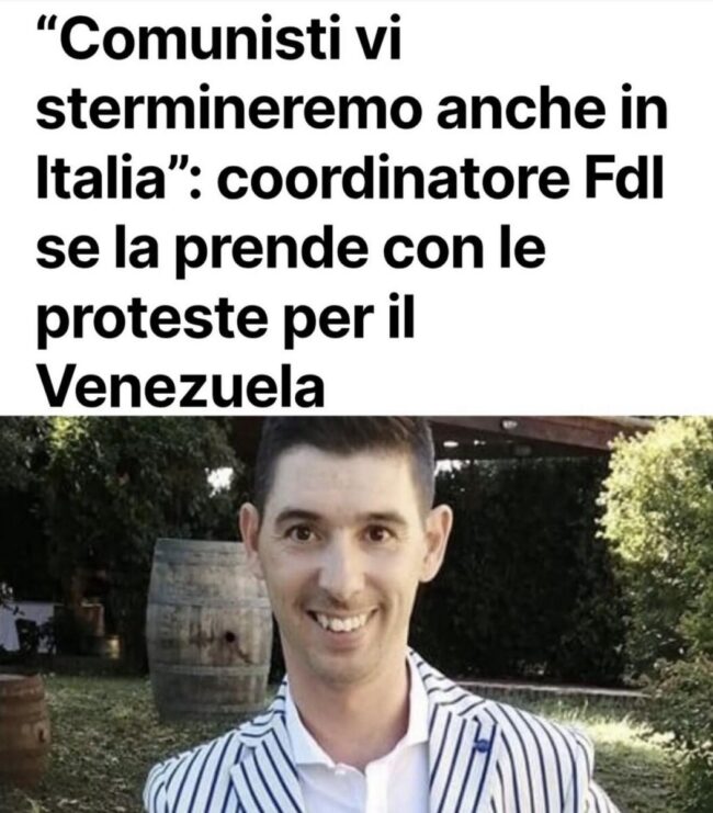 Commentando la notizia pubblicata dal quotidiano online gonews.it su una manifestazione ieri a Empoli contro l’attacco Usa al Venezuela, il Cantini ha scritto sobriamente su Facebook quanto segue: “I soliti comunisti… prima o poi vi stermineremo anche in Italia”.