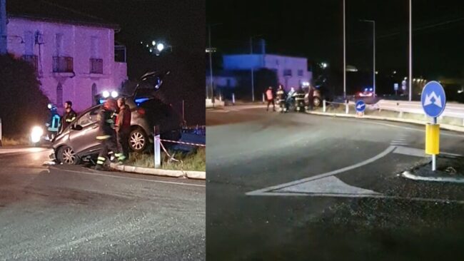 Incidente sulla statale 106, auto finisce sull’aiuola di una rotatoria