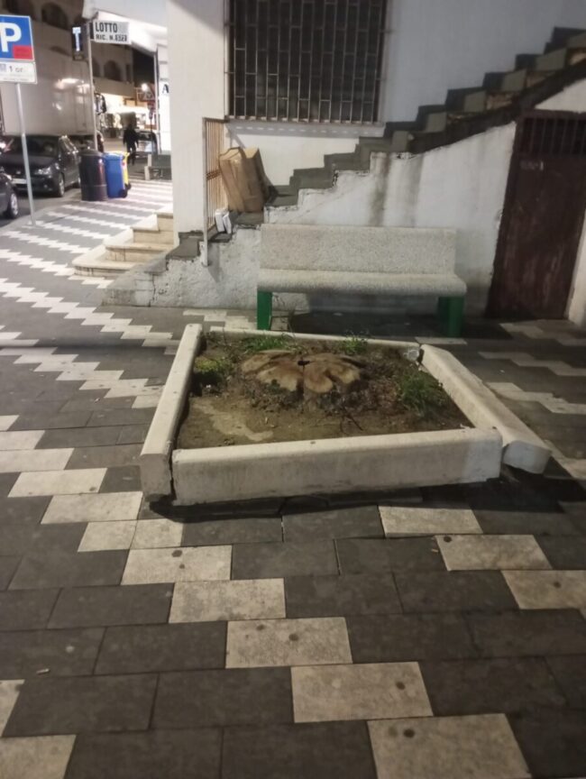 A questi si aggiungono interventi di manutenzione rimasti incompleti: dalla fontana di piazzetta Garibaldi, lasciata divelta dopo un intervento per una perdita d’acqua, a quella di Largo San Girolamo, dove la perdita non è stata neppure risolta, fino ai marciapiedi e alle aiuole dei grandi alberi, mai ripristinati dopo il loro abbattimento.