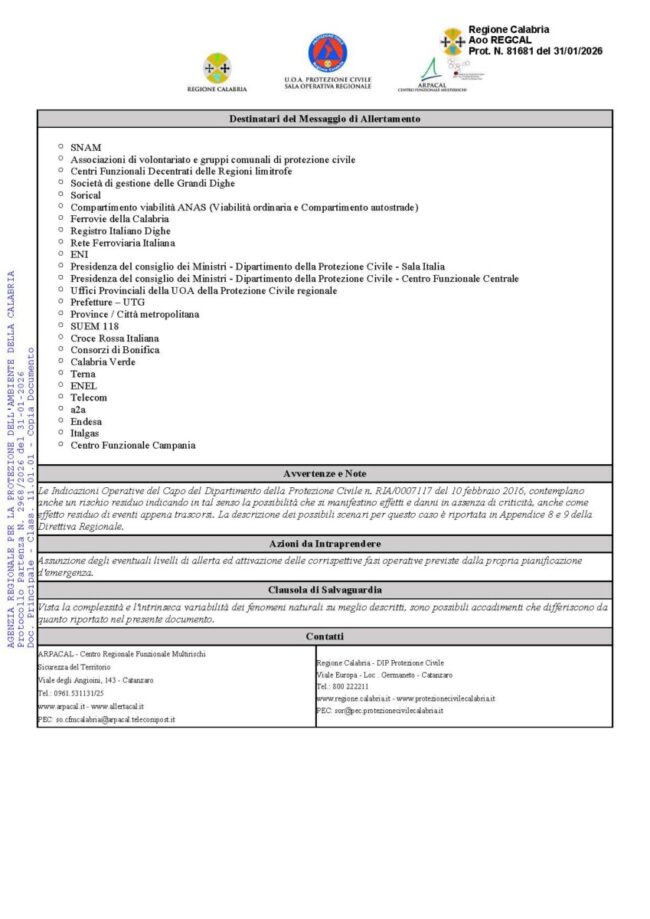Maltempo, domani allerta gialla sulla Calabria ionica