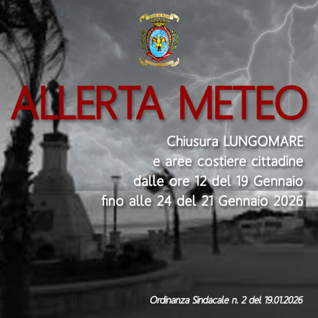 • la chiusura del Lungomare e delle aree costiere cittadine (fino alle ore 24 del 21 gennaio 2026);