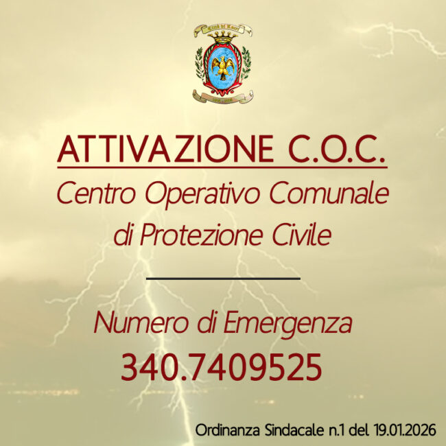 L’Amministrazione Comunale di Locri ha disposto (con Ordinanza Sindacale n.1/2026) l’attivazione del 𝐂𝐞𝐧𝐭𝐫𝐨 𝐎𝐩𝐞𝐫𝐚𝐭𝐢𝐯𝐨 𝐂𝐨𝐦𝐮𝐧𝐚𝐥𝐞 (C.O.C) e invita i cittadini alla massima prudenza, richiamandosi anche alle raccomandazioni diffuse dalla Protezione Civile (non mettersi in viaggio se non strettamente necessario; evitare i sottopassi; abbandonare i piani seminterrati o interrati se ubicati in zone depresse o a ridosso di fiumi, torrenti tombati o con sezioni d’alveo ristrette per cause antropiche; evitare l’accesso alle aree verdi).