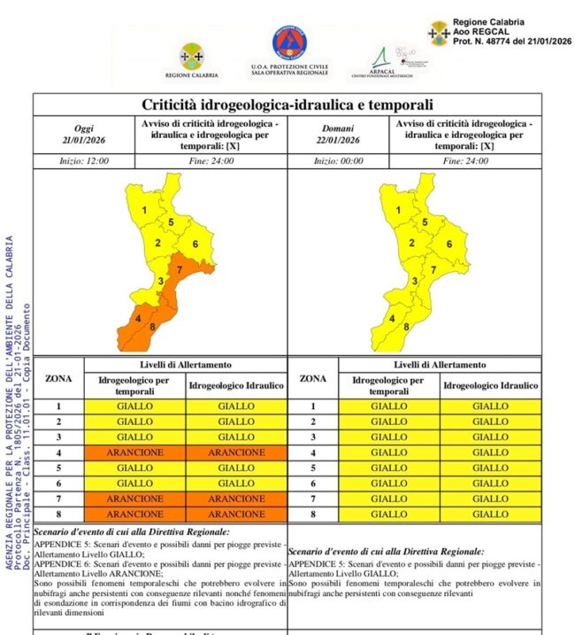 Persiste ancora per la giornata odierna Allerta Arancione su Cala 3, 6 e 7. Allerta Gialla altrove.