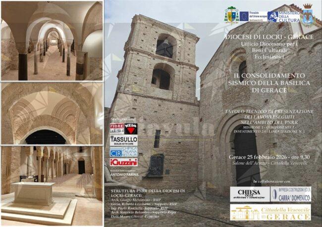 La Diocesi di Locri-Gerace, quale Ente gestore esterno dei lavori di consolidamento sismico della Basilica Concattedrale di Gerace, atteso il particolare interesse e l’attenzione rivolta all’intervento di restauro, in collaborazione con la ditta esecutrice dei lavori, Carrà Domenico, e con la direzione editoriale della rivista Chiesa Oggi, organizza per il giorno 25 febbraio p.v. a partire dalle ore 09:30, un incontro tecnico per la presentazione dei lavori.
