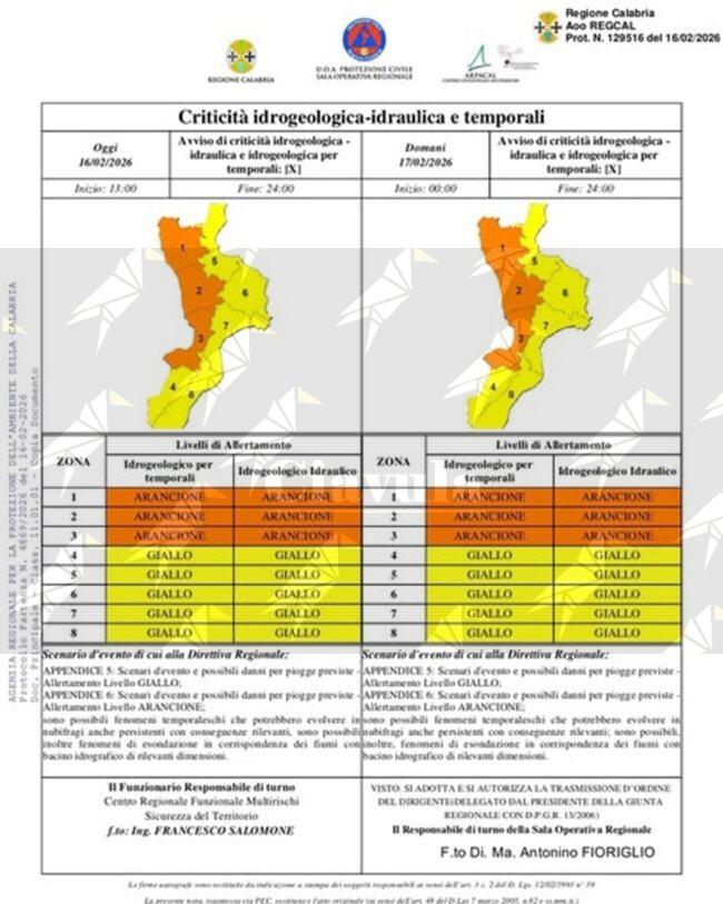 In merito a ciรฒ, come preventivato, la protezione civile insieme al centro funzionale multirischi Arpacal ha emesso ๐๐ป’๐ฎ๐น๐น๐ฒ๐ฟ๐๐ฎ ๐ฎ๐ฟ๐ฎ๐ป๐ฐ๐ถ๐ผ๐ป๐ฒ ๐๐๐น๐น๐ฒ ๐ฎ๐ฟ๐ฒ๐ฒ ๐ง๐ถ๐ฟ๐ฟ๐ฒ๐ป๐ถ๐ฐ๐ต๐ฒ ๐ฒ ๐ถ๐ป๐๐ฒ๐ฟ๐ป๐ฒ ๐ฑ๐ฒ๐น ๐๐ผ๐๐ฒ๐ป๐๐ถ๐ป๐ผ, ๐๐ฎ๐๐ฎ๐ป๐๐ฎ๐ฟ๐ฒ๐๐ฒ ๐ฒ ๐ฉ๐ถ๐ฏ๐ผ๐ป๐ฒ๐๐ฒ ๐ฝ๐ฒ๐ฟ ๐น๐ฎ ๐ด๐ถ๐ผ๐ฟ๐ป๐ฎ๐๐ฎ ๐ฑ๐ถ ๐ผ๐ด๐ด๐ถ ๐ฒ ๐ฝ๐ฒ๐ฟ ๐พ๐๐ฒ๐น๐น๐ฎ ๐ฑ๐ถ ๐ฑ๐ผ๐บ๐ฎ๐ป๐ถ, ๐บ๐ฎ๐ฟ๐๐ฒ๐ฑ๐ถฬ ๐ญ๐ณ ๐ณ๐ฒ๐ฏ๐ฏ๐ฟ๐ฎ๐ถ๐ผ, ๐บ๐ฒ๐ป๐๐ฟ๐ฒ ๐ฟ๐ฒ๐๐๐ฒ๐ฟ๐ฎฬ ๐ถ๐ป ๐๐ถ๐ด๐ผ๐ฟ๐ฒ ๐น’๐ฎ๐น๐น๐ฒ๐ฟ๐๐ฎ ๐ด๐ถ๐ฎ๐น๐น๐ฎ.