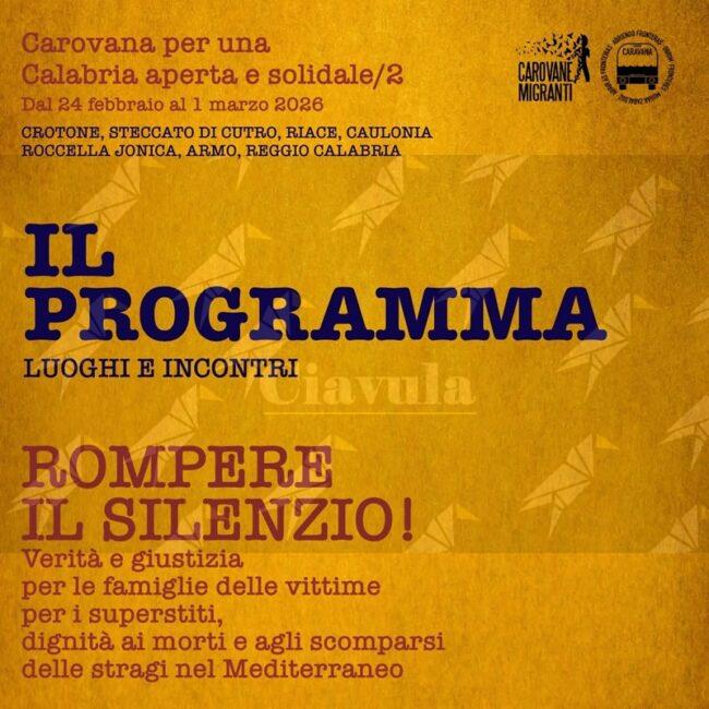 Il programma della Carovana per una Calabria aperta e solidale che partirà da Cutro e passerà da Caulonia