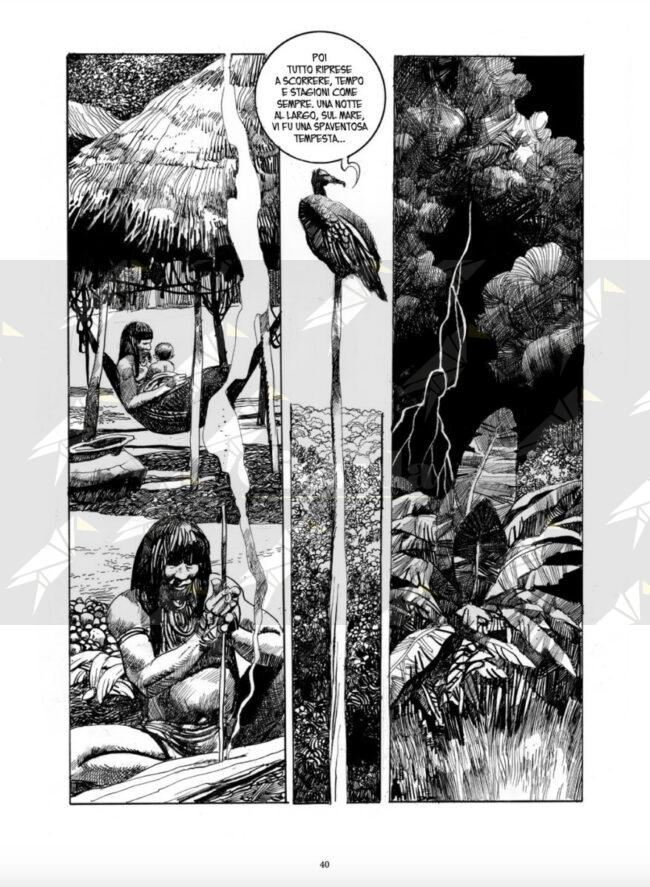 Disponibile in libreria dal 27 febbraio, «Ipotesi 1492 – Algarve 1460» unisce due racconti pubblicati originariamente a quattordici anni di distanza l’uno dall’altro — rispettivamente su Alter Alter nel 1978 e su Comic Art nel 1992 — ma legati da una profonda coerenza tematica e formale. In queste pagine magnificamente illustrate, l’autore utilizza l’evento storico come pretesto per costruire parabole poetiche e beffarde, capaci di ribaltare le prospettive consolidate sui grandi viaggi di esplorazione.