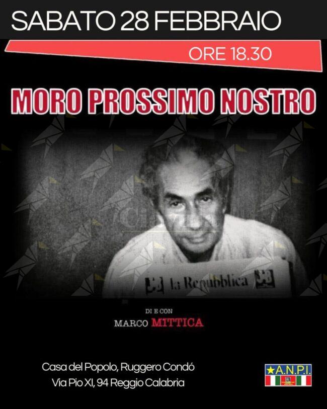 Sabato 28 febbraio alle ore 18.30, presso la Casa del Popolo “Ruggero Condó” di Reggio Calabria, andrà in scena “Moro prossimo nostro”, spettacolo scritto e interpretato dall’attore Marco Mittica, dedicato a una delle pagine più drammatiche della storia repubblicana italiana: il sequestro e l’uccisione di Aldo Moro.