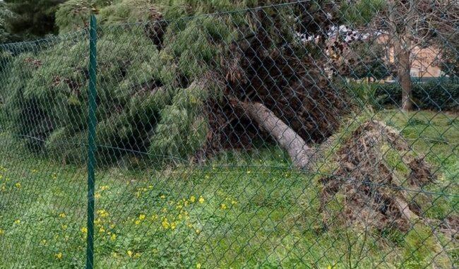 Tragedia sfiorata a Caulonia, a causa del vento crolla un grande albero nella zona del parco giochi
