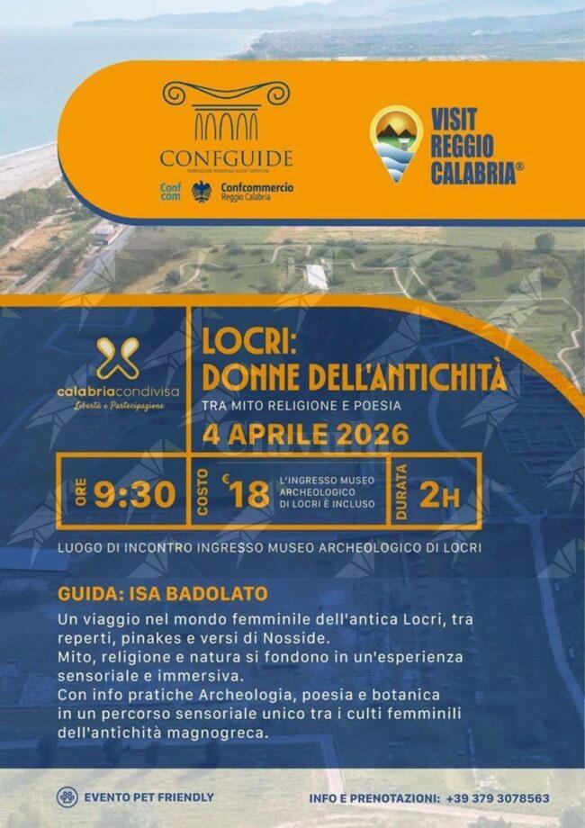 Locri – Un’esperienza immersiva alla scoperta del mondo femminile nell’antica Magna Grecia: è questo il cuore dell’evento “Locri: Donne dell’Antichità. Tra mito, religione e poesia”, in programma il prossimo 4 aprile 2026 alle ore 9:30 presso il Museo Archeologico di Locri.