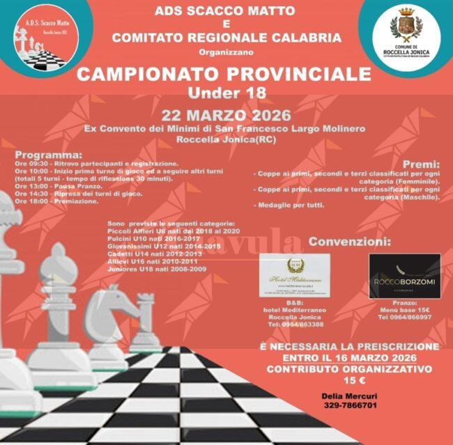 La grande strategia torna protagonista sulla fascia jonica reggina. Domenica 22 marzo, la suggestiva cornice dell’ex Convento dei Minimi a Roccella Ionica ospiterà il Campionato Provinciale Under 18 di scacchi, evento di punta per il movimento giovanile del territorio.
