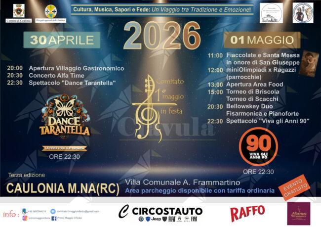La terza edizione del “1° MAGGIO IN FESTA” a Caulonia Marina sarà esplosiva. La sera del 30 aprile dalle ore 20;00 la Villa Angelo Frammartino si accende di colori, musica e profumi, in attesa del 1 maggio.
