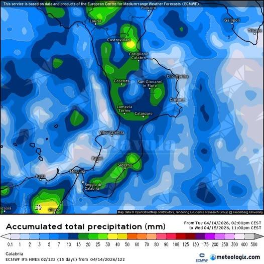 Lo spostamento del ciclone Ulla verso Sud causerà il ritorno delle piogge nelle prossime su parte della Regione e in particolare lungo le aree joniche e interne tra cui Reggino, Catanzarese e Crotonese con possibili fenomeni localmente moderati.