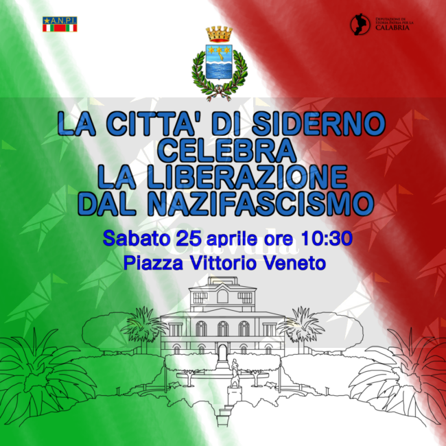 La Città di Siderno celebra la Liberazione dal nazifascismo ricordando e onorando i concittadini e i connazionali che hanno immolato la propria vita affinché nel nostro amato Paese trionfassero i valori e gli ideali di Democrazia e Libertà.