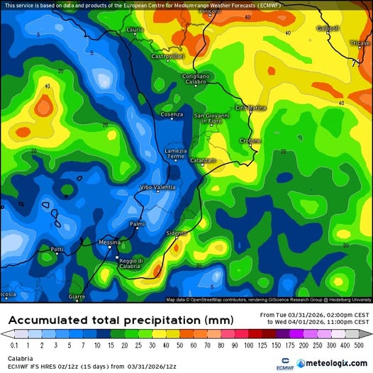 Nelle prossime ore il maltempo continuerà ad interessare per l’intera giornata di oggi, 1 Aprile , con condizioni meteorologiche instabili su gran parte della Calabria ma soprattutto sulle aree Joniche e interne con piogge e locali temporali che interesseranno ancora il Reggino, Catanzarese, Crotonese e Cosentino.