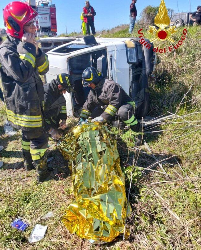 Per cause in corso di accertamento, il conducente del mezzo ha perso il controllo del veicolo, che è uscito fuori strada finendo in una scarpata e adagiandosi su un fianco.