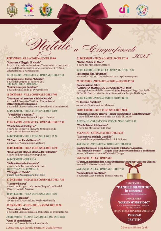 Cinquefrondi accende il Natale: un mese di eventi e il concertone di Daniele Silvestri